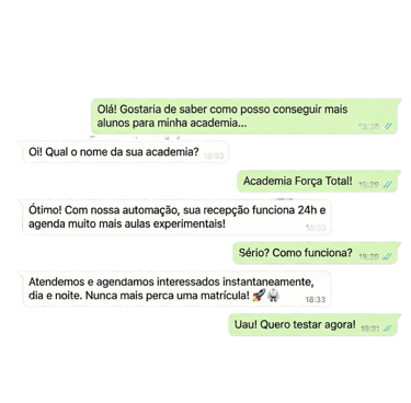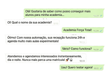 Atendemos, qualificamos e agendamos aulas experimentais automaticamente, enquanto você foca no treino.